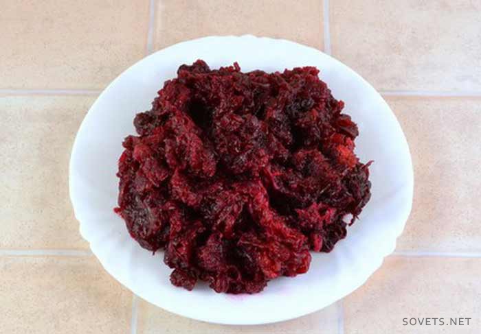 Остиглу буряк почистити, подрібнити з допомогою середньої терки.
