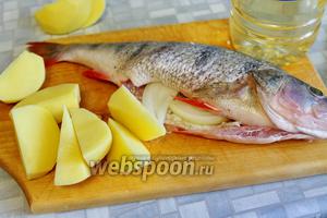Збризнути окуня лимонним соком, посолити, поперчити. Картоплю очистити й нарізати часточками.