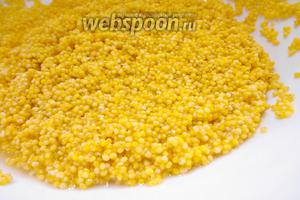Пшоно промиваємо дуже ретельно, 3-4 рази в холодній воді. Потім заливаємо його окропом на 5-7 хвилин, гарячу воду зливаємо. Повторюємо процедуру 2 рази.