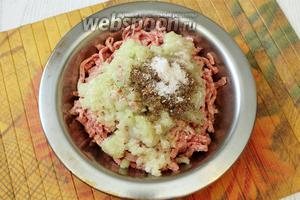 З кісток зрізаємо м’якоть і сало, прокручуємо через м’ясорубку, також прокручуємо ріпчасту цибулю. Додаємо за смаком сіль і спеції.