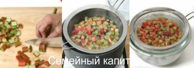Ревінь підготувати також, як і описано вище. Бланшувати в цьому випадку не потрібно. Пюрируйте шматочки ревеню в блендері або прокрутити через м’ясорубку.