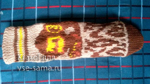 Довжина – 13 см (35 рядів). Така довжина потрібна, тому що на передній частині халяви носка буде вывязанная картинка на 35 рядах.