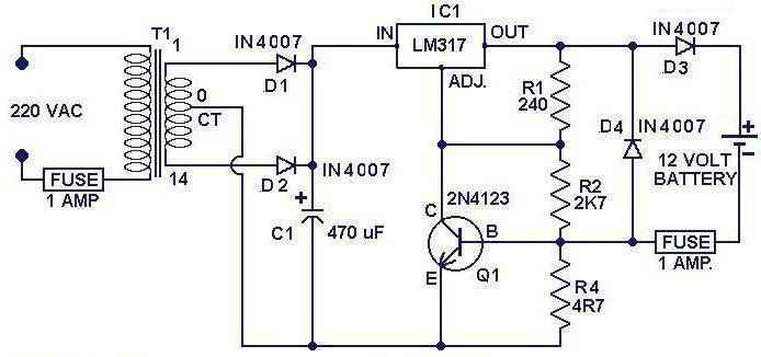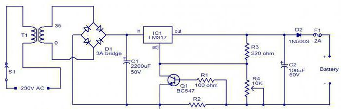 У наш час випускаються моделі на 12, 14 і 18 Ст. Також важливо відзначити, що виробники застосовують різні комплектуючі елементи для зарядних пристроїв. Для того щоб розібратися в цьому питанні, слід поглянути на стандартну схему зарядного.