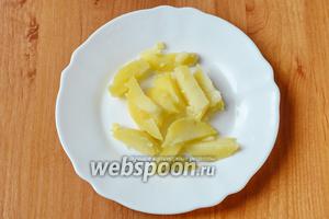Картоплю нарізаємо скибочками. У мене він був попередньо отварен.