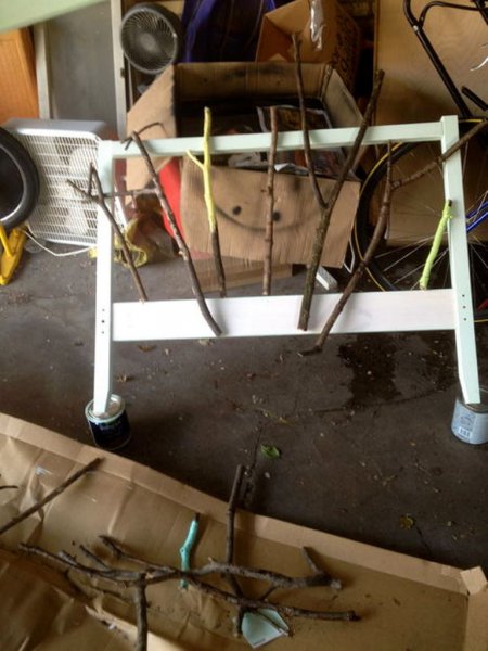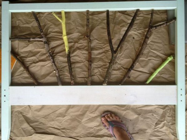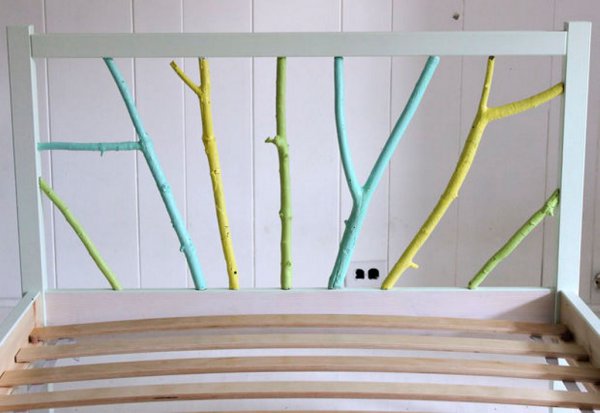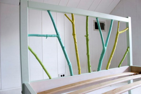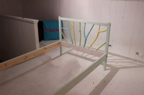 Для виготовлення такої оригінальної ліжка необхідний всього лише каркас ліжка Fjellse ІКЕА, фарба і гілки дерев, які можна нарвати безкоштовно на свіжому повітрі.