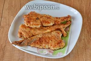 Готову страву викласти на тарілку, застелену паперовою серветкою, щоб прибрати зайве масло. Потім перекласти на сервірувальну тарілку. Приємного апетиту!
