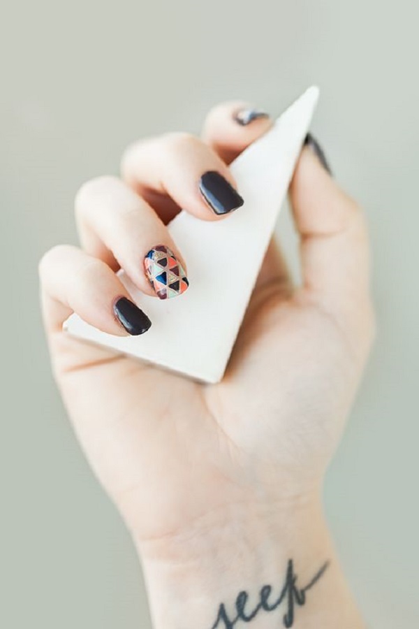 За допомогою різнокольорових смужок у модниць з’явилася можливість створювати гарні графічні малюнки. Такий манікюр виглядає стильно і неординарно, він обов’язково приверне увагу!