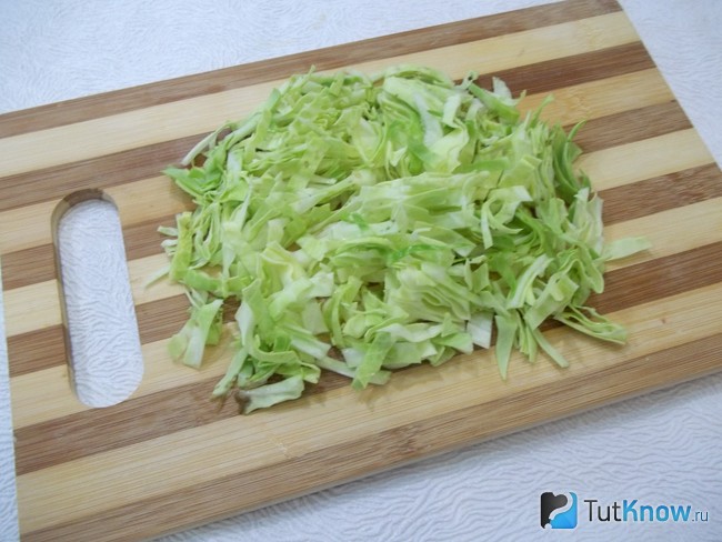 5. Капусту помийте і дрібно наріжте. Якщо на поверхні качана брудні листя, то їх приберіть.