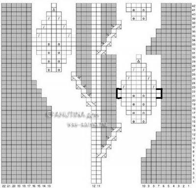 В’язала спицями №3. Набрала 30 петель і в’язала 4,5 см гумкою 1х1, потім перейшла на в’язання візерунка.