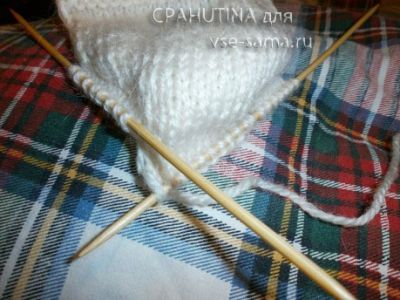 Для цього спочатку недовязывала по одній петлі з кожного кінця спиці, обкручивая петлю, поки по центру не залишиться 8 петель.