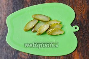 Нарізаємо тонкими кільцями огірки.