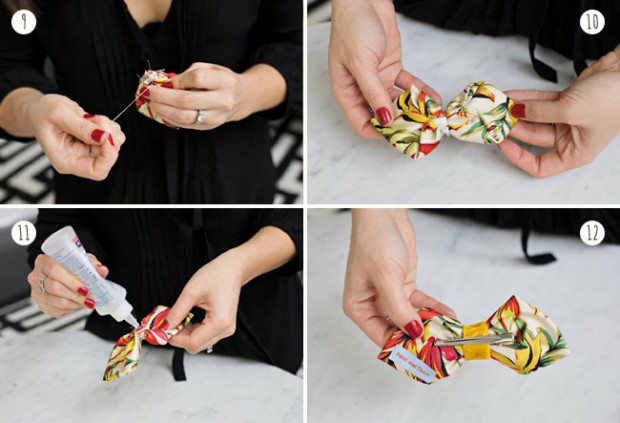 5. Якщо метелик висохла, то обертаємо маленької смугою середину основного вироби, скріпивши ззаду невеликою кількістю клею. Обрізаємо зайву тканину, закріплюють шпилькою або затиском.