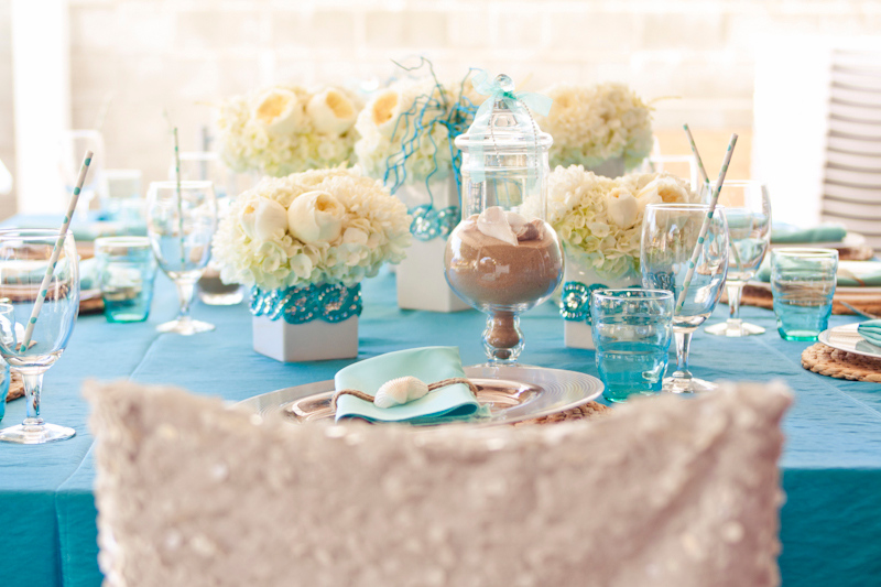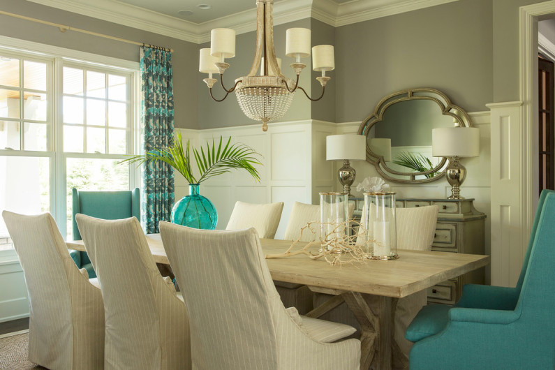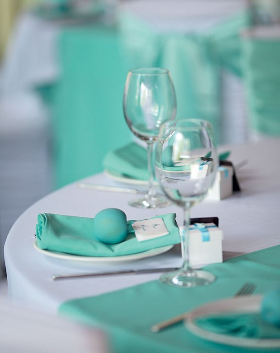 Почніть з вибору бірюзовою скатертини або серветки, поєднуйте з білим, кремовим, потім, додайте срібні або золоті акценти (келихи, прилади), — ваше свято стане найвищою мірою естетичним.