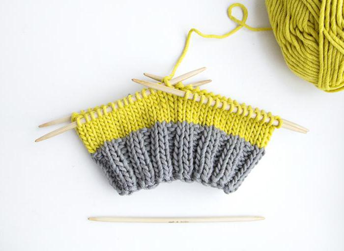 Спочатку вывязывается гумка один на один (одна виворітна петля, одна лицьова), можна виконати гумку і два на два (дві виворітних петлі, дві особових). Після вывязки п’яти сантиметрів гумки переходять на в’язку основного візерунка. На першому фото показаний варіант з англійської гумкою, більш вправні майстрині можуть виконати ажурний візерунок або коси, а можна просто перейти на в’язку особового полотна, як показано на фото нижче.