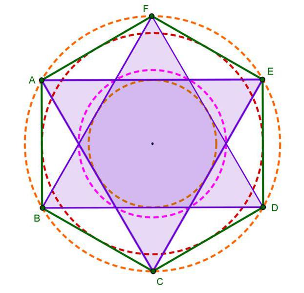 - сторона правильного шестикутника має значення, яке співпадає з радіусом описаного біля нього кола;