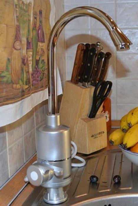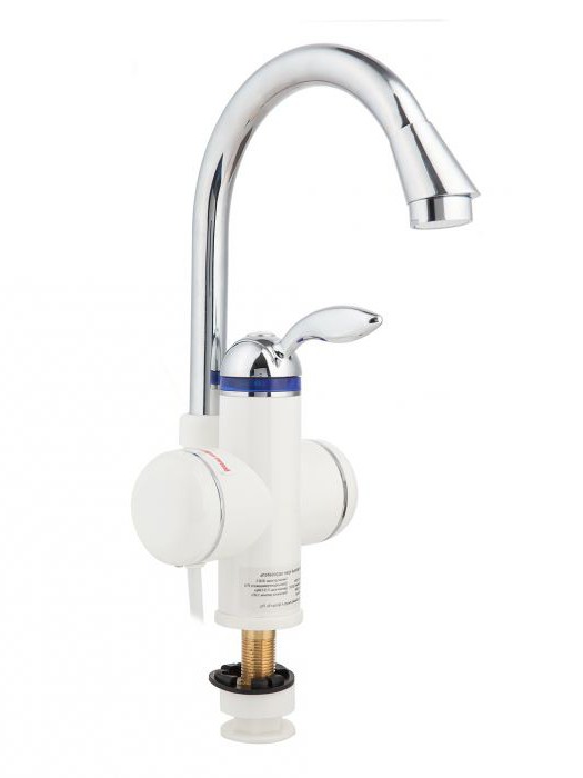 Досить потужний нагрівальний елемент, що забезпечує швидке підвищення температури води, розташовується в малій порожнини підстави приладу. Поки в рідині немає необхідності, в нагрівачі її немає, змішувач функціонує в холостому режимі. Як підкреслюють покупці, переваги цього пристрою ви можете оцінити тільки при відсутності гарячої води. Проточний електричний нагрівач являє собою насадку на кран, яка здатна автономно підігрівати воду, що проходить через неї. Вже через кілька хвилин після відключення води ви зможете компенсувати це неприємна обставина.