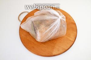 Викладаємо рулет в поліетиленовий пакет, спускаємо повітря і туго зав’язуємо.