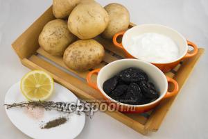 Підготуйте картоплю, сметану, чорнослив, невеликий шматочок лимона, чебрець, трохи чорного меленого перцю і сіль (використовувала рожеву гімалайську).