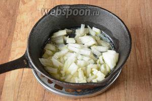 Цибулю порізати кубиками. Обсмажити на розігрітій олії до золотистого кольору.