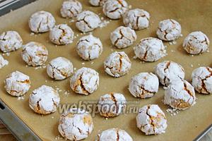 Кладемо всі кульки на лист і випікаємо 12 хвилин при 180°С. Готові печеньки будуть дуже м’які зверху, нехай вас це не лякає. Це так і повинно бути.