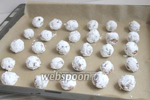 Прибираємо його в холодильник на 0,5 години. Тепер беремо чашку з цукровою пудрою. І дістаємо наше тісто. Чайною ложкою «відриваємо шматочок тіста і скачуємо його в кульку. Потім цю кульку вмочаємо добре в пудрі.