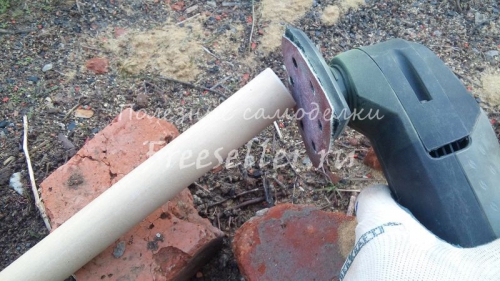 Першим ділом держак був розрізаний на дві однакові заготовки по 55 см (довжину можна робити на свій розсуд). Особисто я просто розпиляв навпіл, щоб не залишалося зайвих відходів.