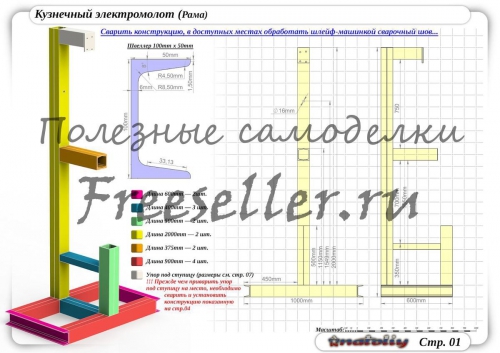 Рама молота зварюється з швелера 100*50мм.