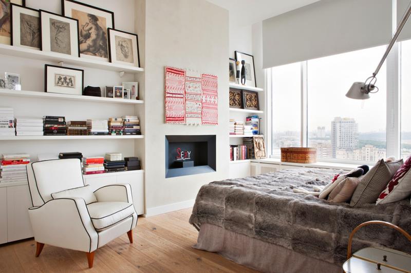 По можливості, зведіть до мінімуму кількість книг в спальні, при цьому, розташовувати їх слід подалі від ложа, наприклад, на стелажі або полиці біля протилежної стіни.