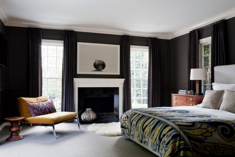 Не слід спокушатися красою густих темних тонів інтер’єрної фарби, тому як в спальні насичений колір стін може і не прижитися. Давно відомо, що темно-синій, бордовий, чорничний, шоколадний і чорний для спальні краще не використовувати у великій кількості, так як подібне оточення буде надавати відчутний вплив, і заважати бадьорого пробудження вранці.
