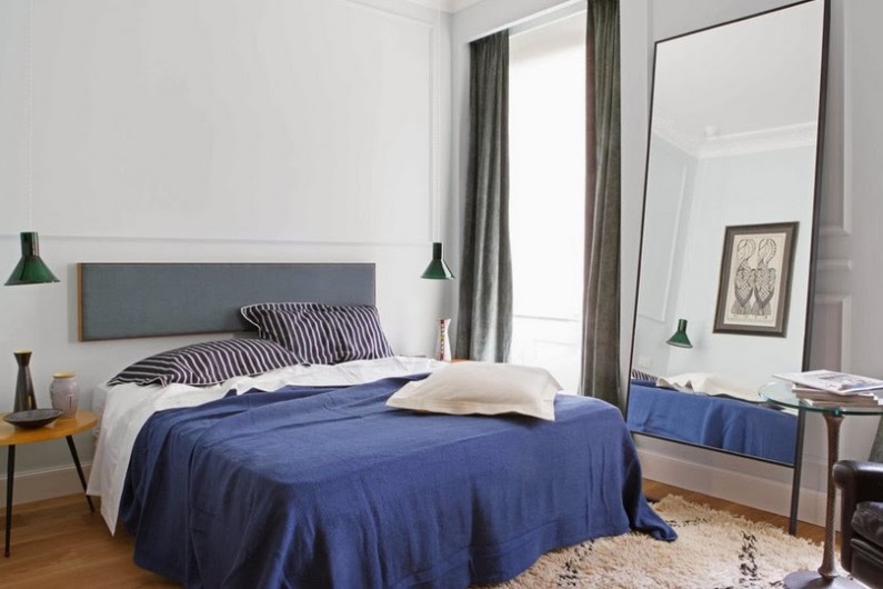 Дзеркало в інтер’єрі спальні слід розташувати таким чином, щоб ви, лежачи на ліжку, не змогли побачити в ньому своє відображення. Наприклад, поставте підлогове дзеркало біля стіни на рівні задньої спинки ліжка, розташуйте два однакових над тумбами, або використовуйте мобільний дзеркало в рамі на коліщатках, яку можна буде розгорнути в будь-яку сторону.