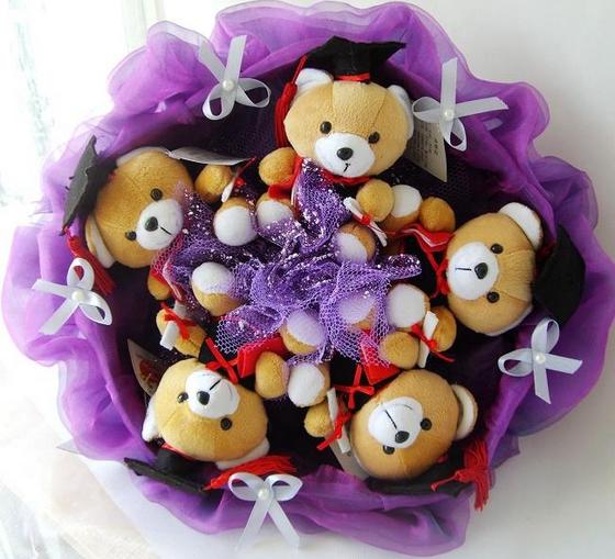 Що стосується розміру, то добре виглядають в букеті невеликі вироби. Найчастіше композицію складають з м’яких брелоків і плюшевих ведмежат.