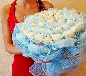 Як видно, букет з плюшевих іграшок поєднує в собі дві функції – святкового «квітника» і милих ведмедиків (або зайчиків, або ще чого). Такий подарунок обійдеться вам набагато дорожче квітів, зате він буде оригінальним, таким, що запам’ятовується, несе частинку вашої душі – а адже це найголовніше.