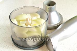 Цибулю чистимо, нарізаємо довільно і подрібнюємо блендером. Я подрібнюю до стану кашки.
