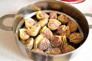 Фаршировані Лумакони викласти в миску, змащену маслом. Краще, щоб черепашки не щільно прилягали один до одного. Готуємо на пару 40 хвилин.
