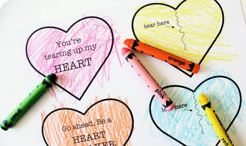 Якщо у Вас немає кольорових аркушів, то роздрукуйте серця на білому папері і розфарбуйте їх самі.
