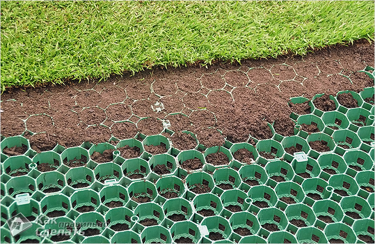Укладання газону на зелену пластикову решітку