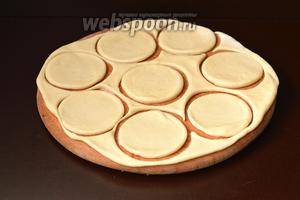 Тісто розкачати товщиною 1,5 мм і вирізати склянкою кружечки.