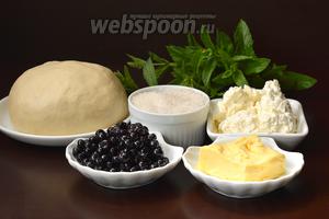 Для роботи нам знадобиться тісто для вареників на сметані, чорниця, сир, цукор, вершкове масло, свіжа м’ята.