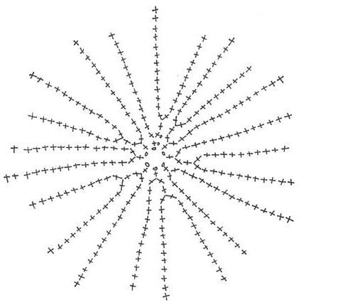 Виготовлення об’ємної деталі починається з того ж, що і плоского кола — з набору ланцюжка повітряних петель і провязывания першого ряду стовпчиків. Різниця в принципі роботи полягає в схемі надбавки і убавки петель.