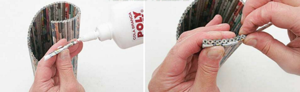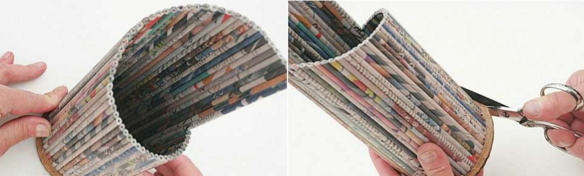 Можна згорнути ще кілька газетних трубочок і обклеїти ними контур підставки, щоб приховати краю. Але це вже на ваш розсуд, адже досить гарно виходить отже.