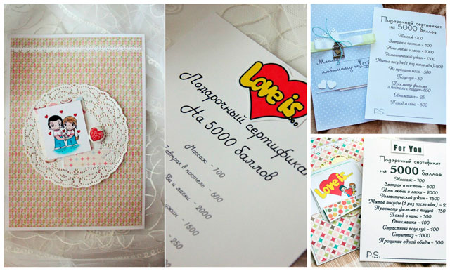 Можна просто скласти список, щоб коханий обрав той варіант, який йому подобається найбільше. Але є й інший варіант. Кожне з бажань можна оформити окремо і зробити велику «чекову книжку». В будь-який зручний момент ваш обранець може скористатися будь-яким із подарованих бажань, а ви зобов’язані прийняти від нього «чек».