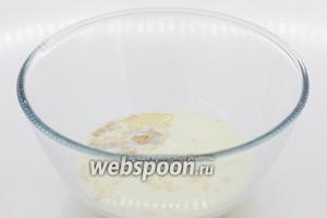 У теплому молоці розчиніть цукор і дріжджі. Залиште в теплому місці на 10-15 хвилин.
