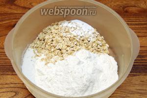 Змішати борошно, вівсянку і розпушувач.