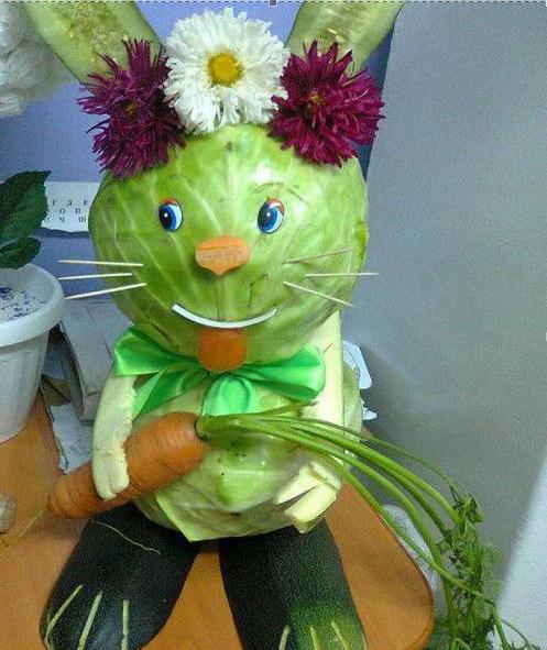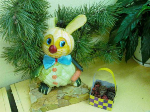 І сьогодні деякі умільці, наділені фантазією, створюють справжні шедеври з того, що росте на грядках у будь-якому городі. Ви також можете спробувати зробити осінні вироби з капусти. Заєць з цього овоча, якщо постаратися, вийде забавним і на кілька днів стане прикрасою вашої дачної тераси або частиною декорацій для дитячого ранку в дитячому саду.