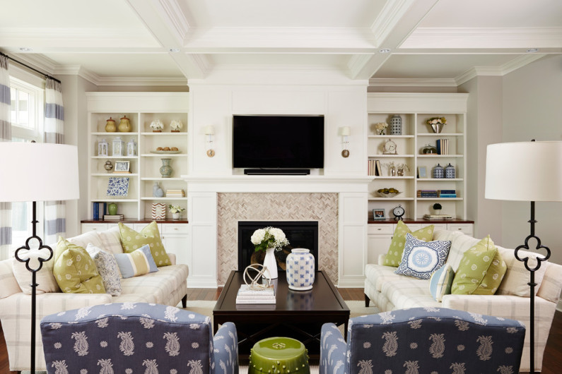 Підберіть для стін вітальні світлий нейтральний відтінок, і пару основних, контрастних або в тон йому, квітів, для облаштування кімнати. Тепер можна доповнювати простір відтінками (темними або світлими, однотонними поверхнями або з візерунком), які в невеликій кількості, але будуть ідеально доповнювати інтер’єр.