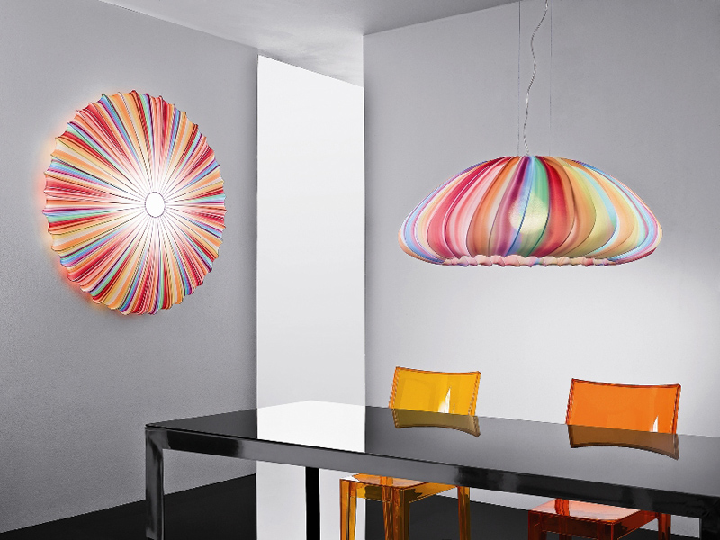 Щоб колір люстри гармоніював з інтер’єром великий кольоровий кімнати, потрібно визначити, куди вона буде розміщена. Якщо, наприклад, над ліжком, а ліжко має фіолетовий колір, тоді і люстру потрібно шукати з фіолетовими деталями.