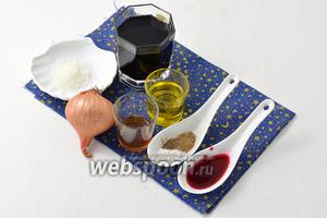 Для роботи нам знадобиться цибуля, соус Наршараб, оливкова олія, бальзамічний оцет, вино червоне десертне, цукор, чорний мелений перець.