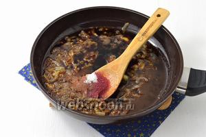 Додати вино, цукор, коріандр, перець, бальзамічний оцет і соус Наршараб.