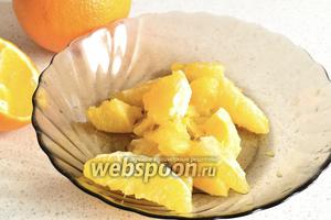 Апельсини чистимо від шкірки і також потрібно видалити всі перетинки по-максимуму. Ріжемо абсолютно довільно.