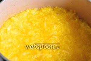 Починаємо варити апельсинове пюре. Уварюємо 20-25 хвилин на середньому вогні.